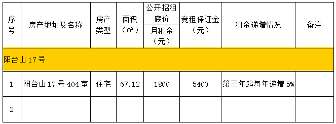 備注:意向承租人對(duì)上述情況應(yīng)有充分了解。詳細(xì)招租規(guī)則、房屋租賃合同樣本、承諾函、報(bào)價(jià)單等招租文件于報(bào)名參加時(shí)領(lǐng)取。