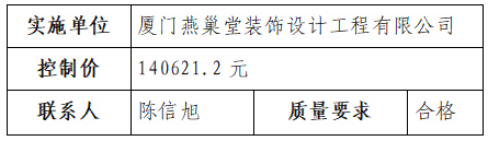 根據(jù)相關(guān)規(guī)定,我司負(fù)責(zé)裝修的園區(qū)服務(wù)大廳、驛站裝修項(xiàng)目直接發(fā)包廈門燕巢堂裝飾設(shè)計(jì)工程有限公司實(shí)施,現(xiàn)于2022年1月14日至2022年1月18日對外發(fā)布結(jié)果公告,內(nèi)容如下: